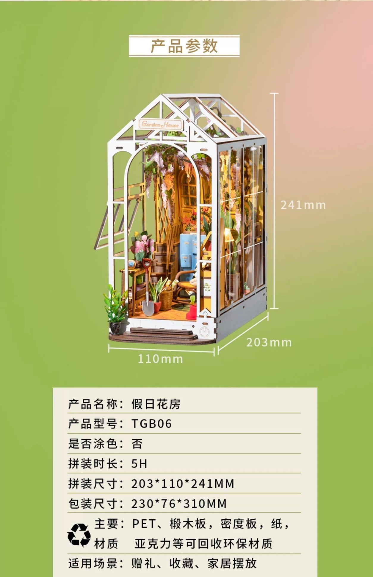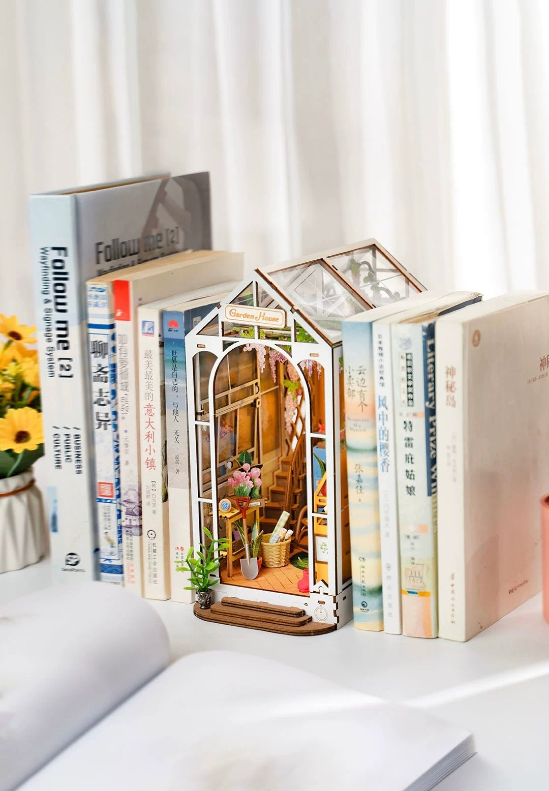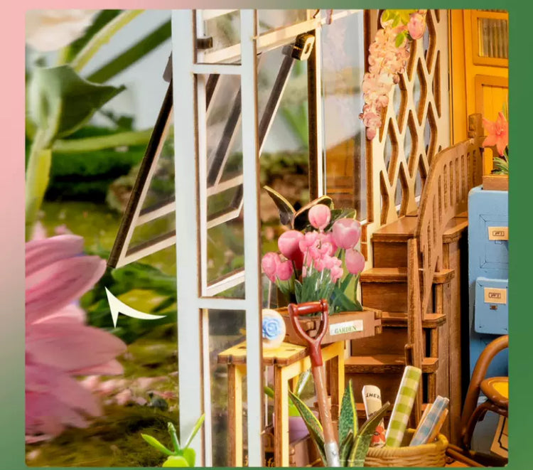 Craft Kits Wooden Booknook & Wonderland | French Flower Garden - DIY Handmade Mini World Miniature Gift with LED Light