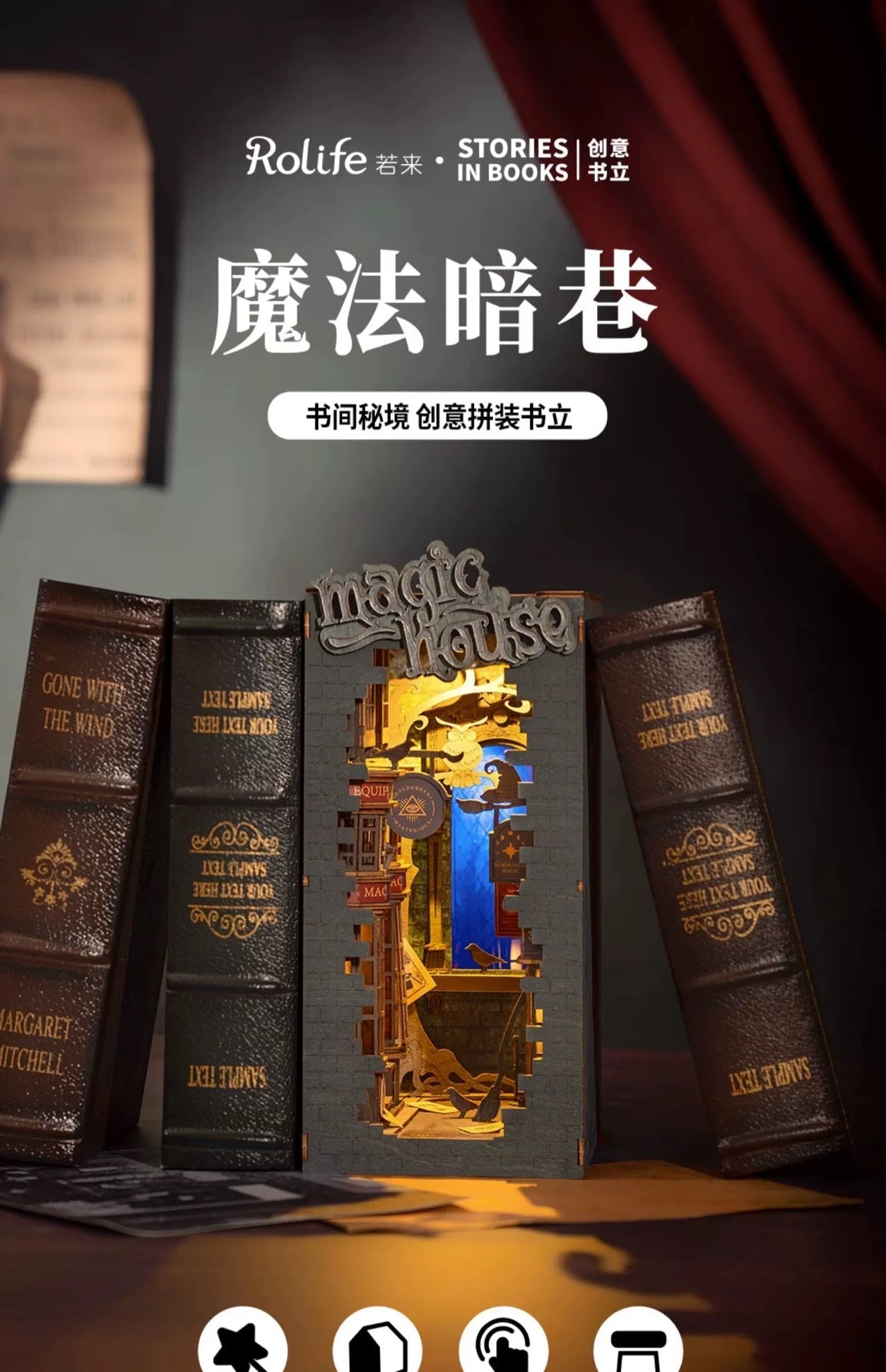 Craft Kits Wooden Booknook & Wonderland | Magic House - DIY Handmade Mini World Miniature Gift with LED Light