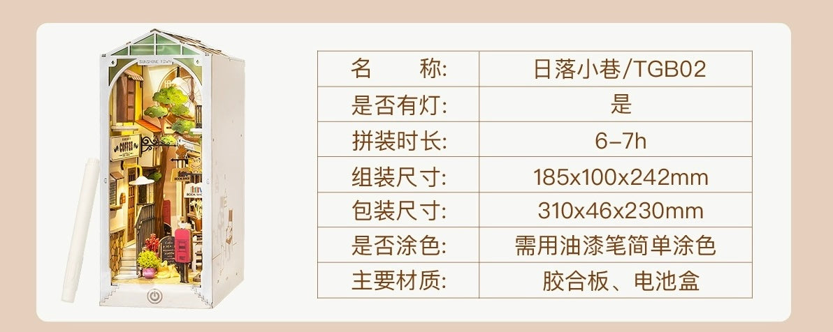 Craft Kits Wooden Booknook & Wonderland | Sunshine Town - DIY Handmade Mini World Miniature Gift with LED Light