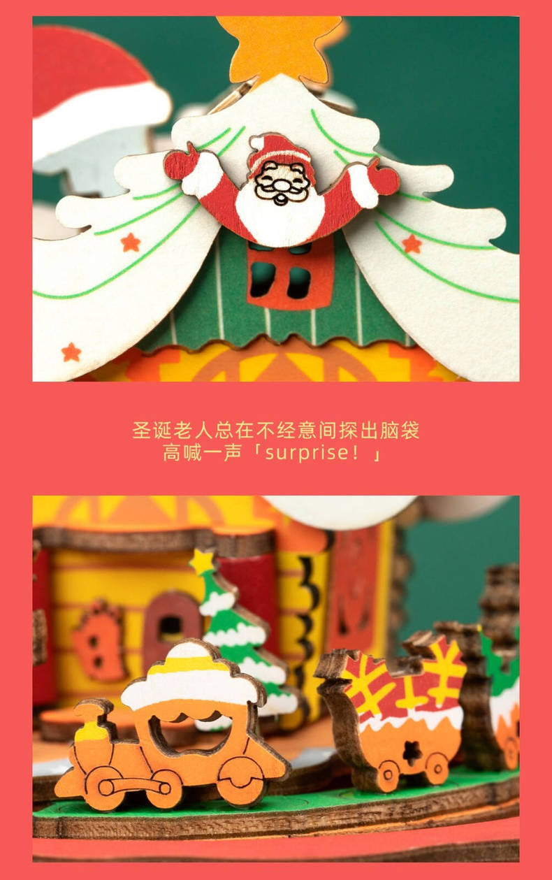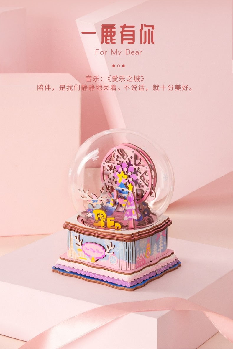 Craft Kits Wooden Music Box | Merry Christmas & Christmas Pink Deer - DIY Handmade Mini World Miniature Gift
