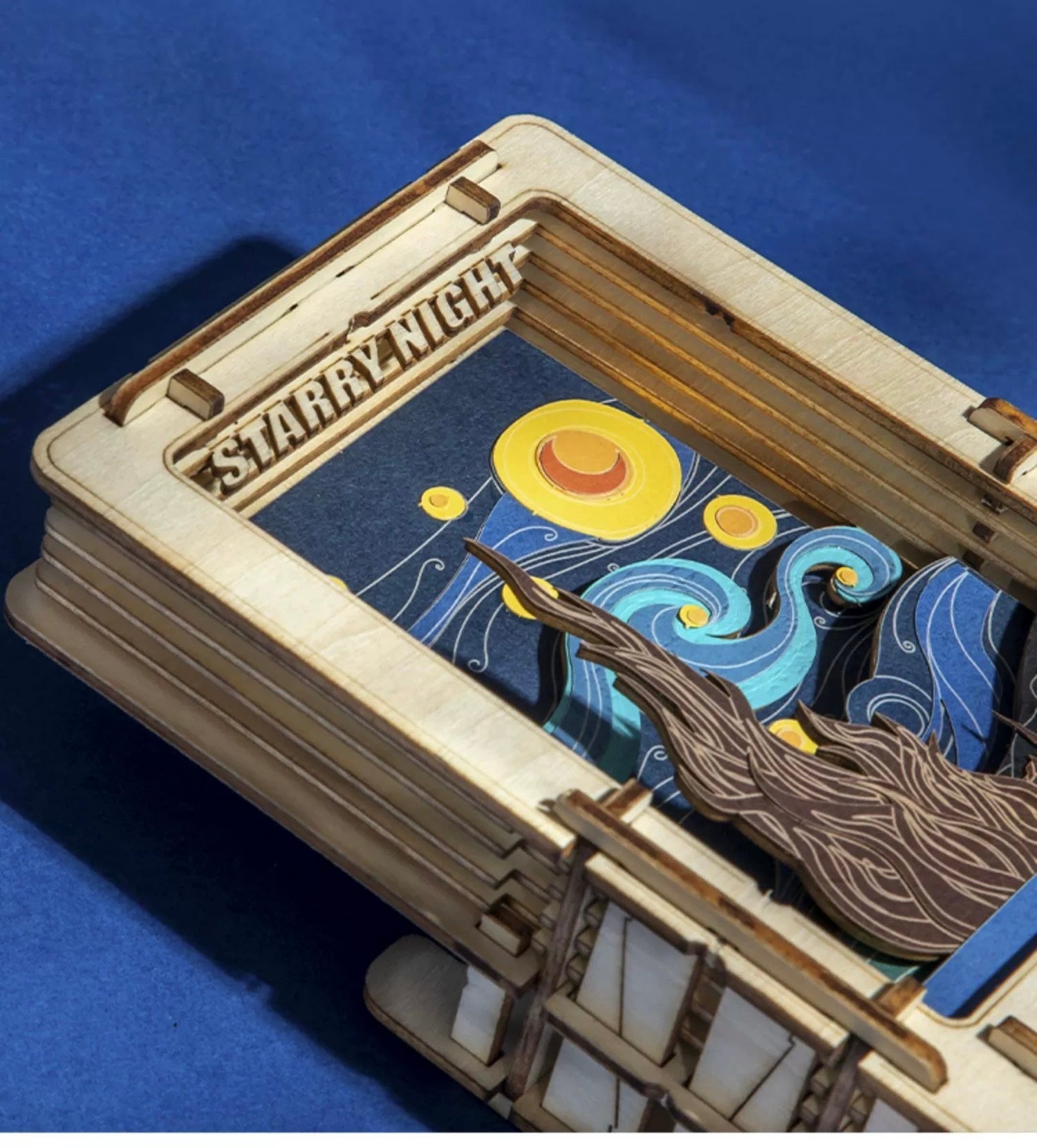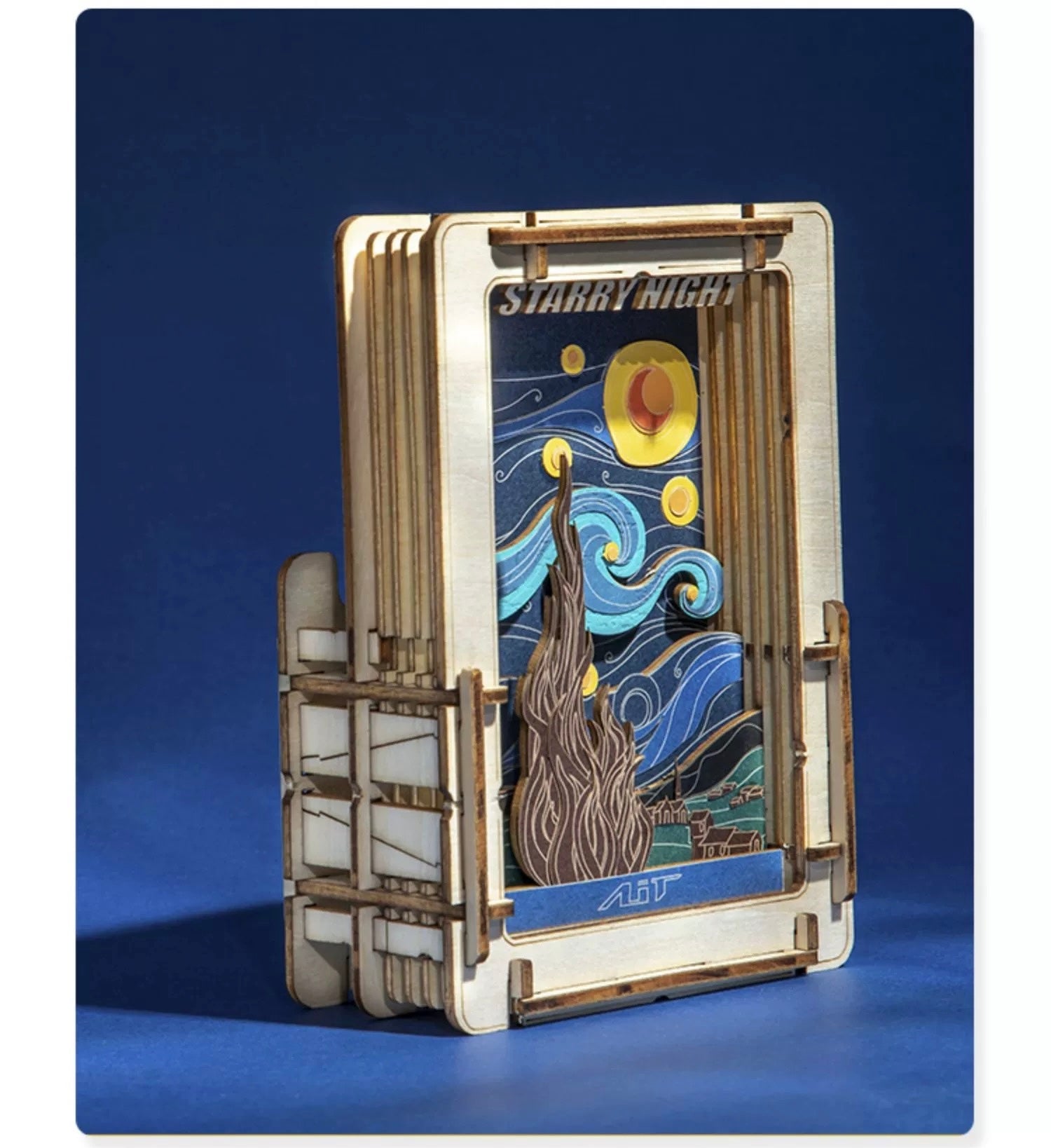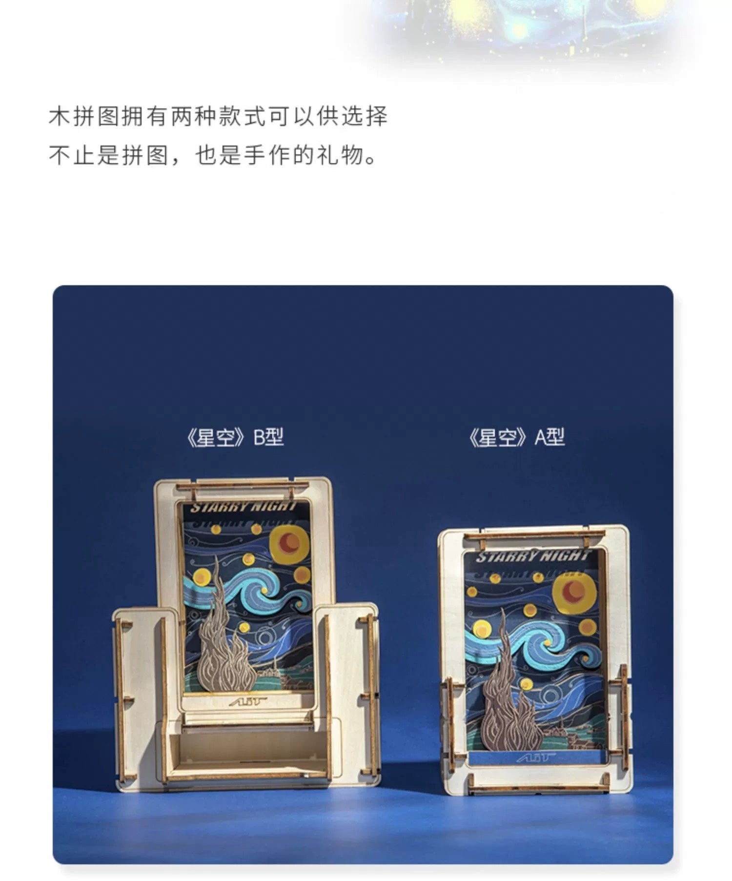 DIY Wooden Jigsaw Puzzle Multi-Purpose World Famous Paintings | Starry Night - Art Frame Home Decoration Gift